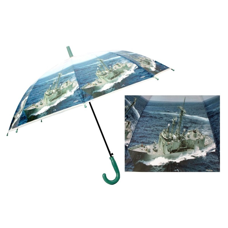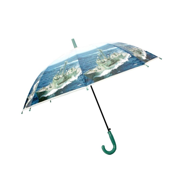 Automatyczna parasolka z motywem militarnym. Czasza parasolki wykonana została z grubej, wytrzymałej folii z kolorowym nadrukiem. Stelaż parasolki wykonany został z wysokiej jakości aluminium. Parasolka wyposażona została w wygodną do trzymania w dłoni rączkę.