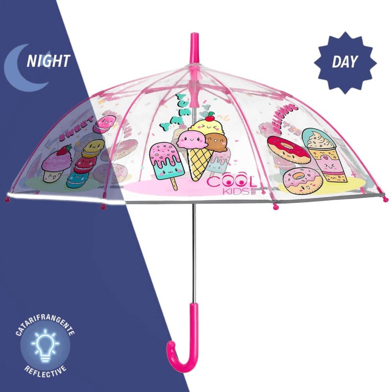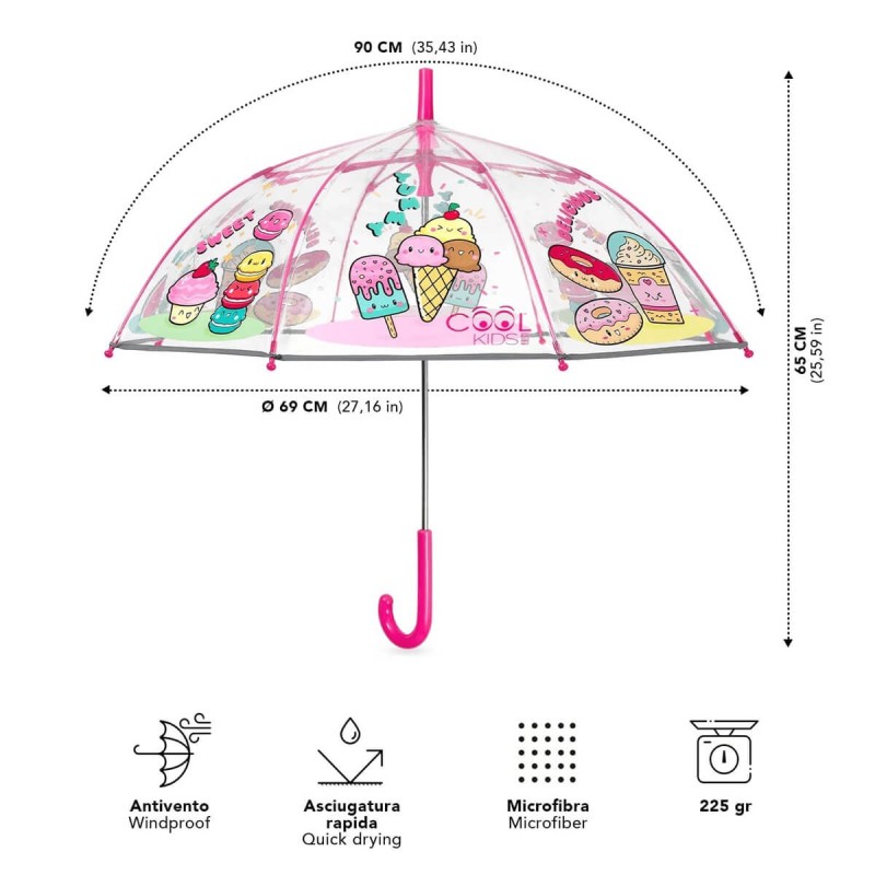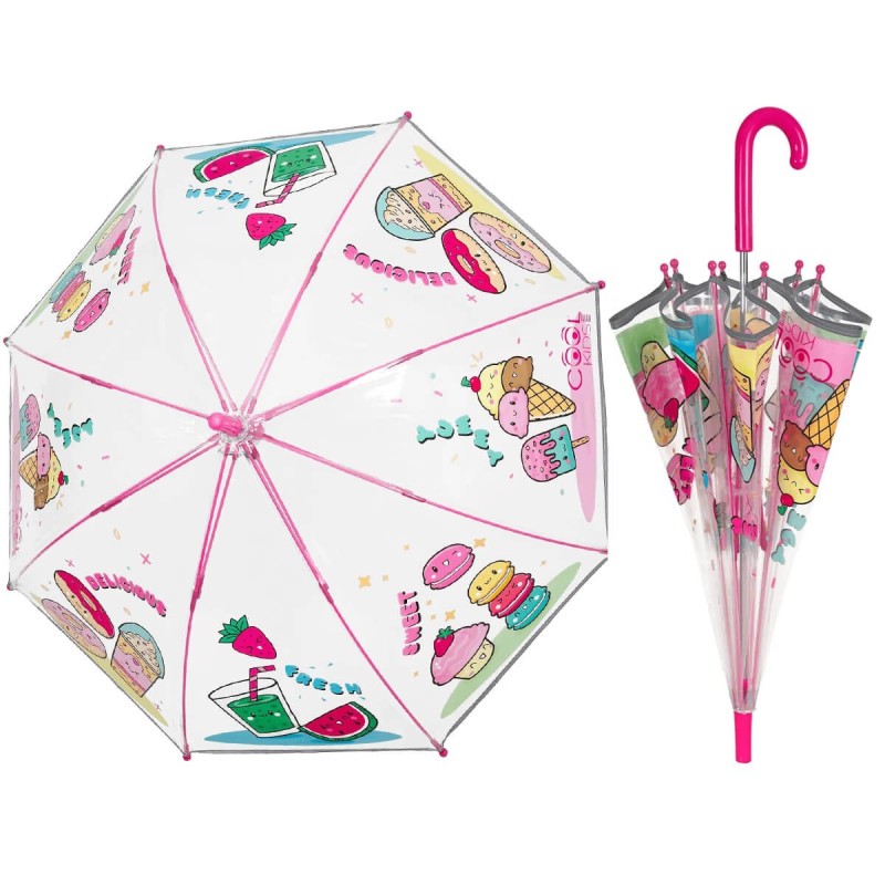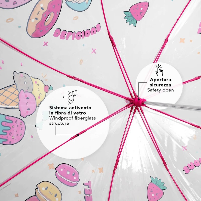 Przezroczysta, bezpieczna, wytrzymała parasolka dziecięca włoskiej firmy PERLETTI.