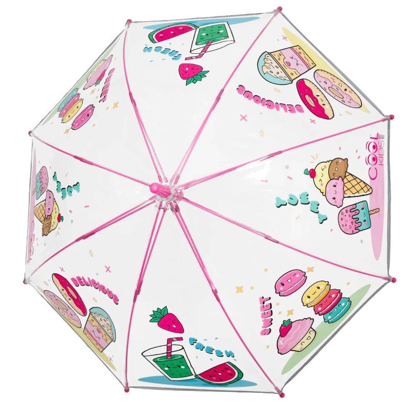 ►Przezroczysta czasza ułatwia dziecku orientację, gdyż pomimo zasłonięcia twarzy parasolem nadal cała okolica jest widoczna.