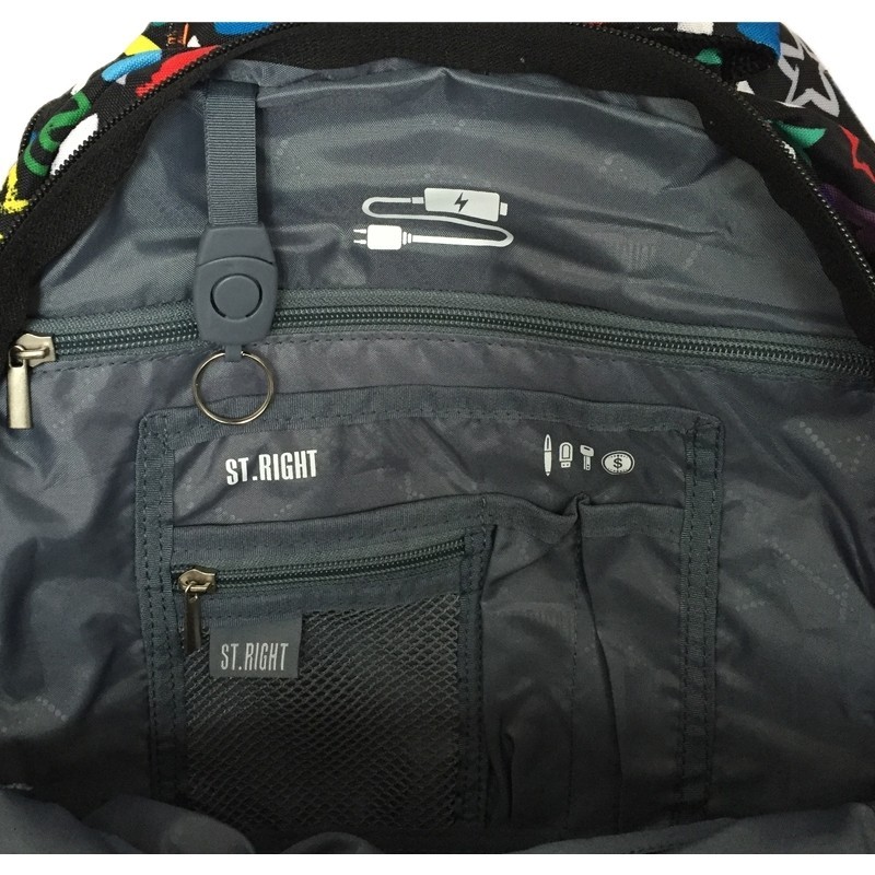 - Pierwsza komora plecaka jest bardzo pojemna - idealna do umieszczenia większych książek i zeszytów. Wewnątrz posiada przegródkę na dokumenty oraz dodatkową kieszonkę, np. na telefon.