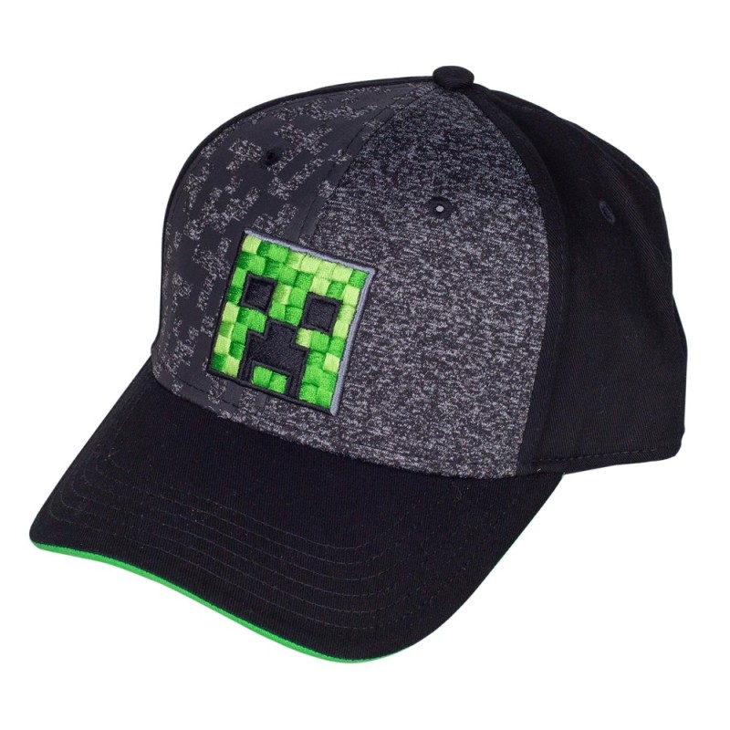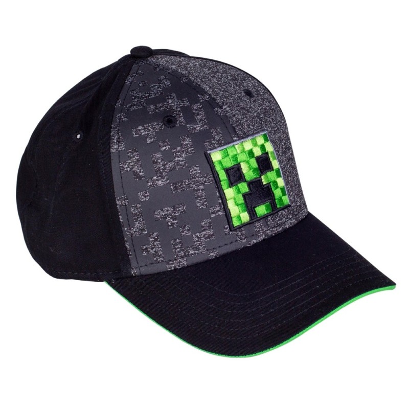 Czarno-zielona czapka z daszkiem Minecraft z motywem graficznym Creepera. Świetne wykonanie. Posiada sześć przeszyć na dwukolorowym daszku oraz regulowane zapięcie na plastikowy zatrzask.